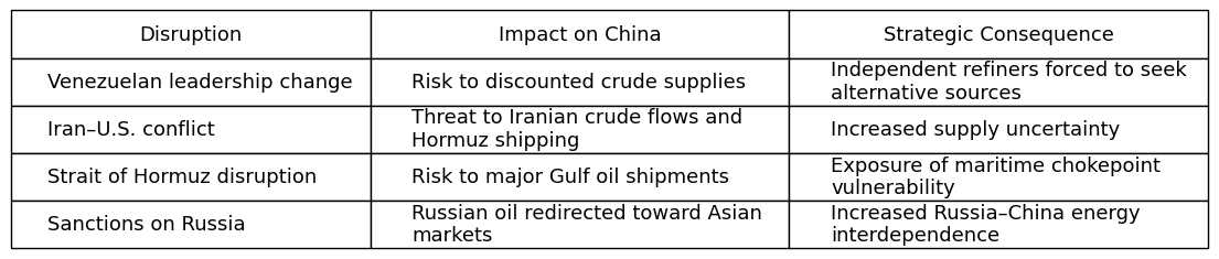 The disruption exposes vulnerabilities in China’s energy security and may accelerate diversification efforts.